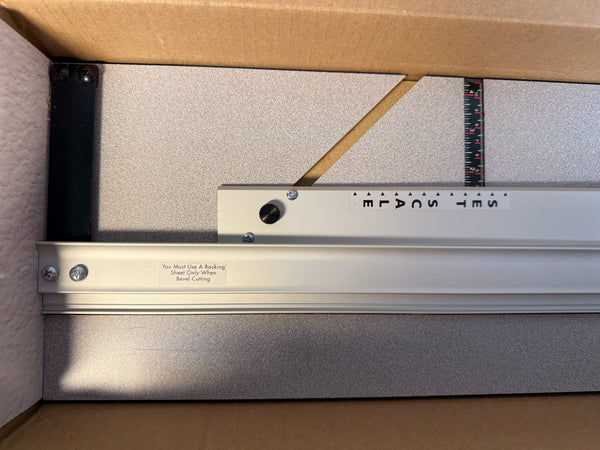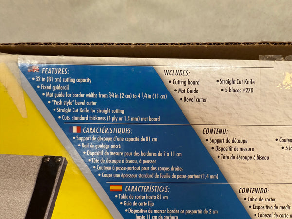 Includes parallel mat guide for setting border widths from 3/4" (1.9 cm) to 4‑5/16" (11 cm), spring loaded serrated guide rail, push style bevel cutting head with start and stop indicator, mat knife for downsizing mat board and foam board, five extra blades, and a fully illustrated matting instruction guide. The 301‑1 Compact Classic is ideal for low volume, at‑home framers.