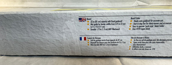 The Compact Classic is a versatile, portable 32" (81cm) capacity mat cutter that provides affordable and professional results. The capacity of mat board between the hinges accommodates up to 32" (81cm) but being an open end machine, the length of a cut can be infinite by cutting and sliding the material through the length of the machine.