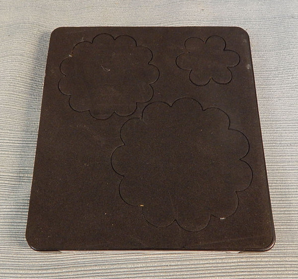 Cuts multiple layers of fabric with dies. Works on a variety of cloth - batting, felt, lace, silk, wool, fleece, etc. - according to the manufacturer. Included with the cutter are (4) 5.5" x 6" cutting dies - Tattered Florals (656640), Flower Layers #11 (659500), Flower Layers #15 (659789), and Leaves, Plain #2 (658105). Used, but in good condition.