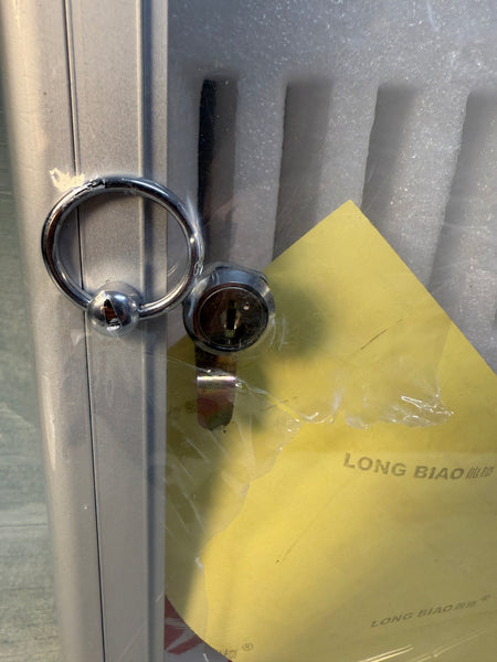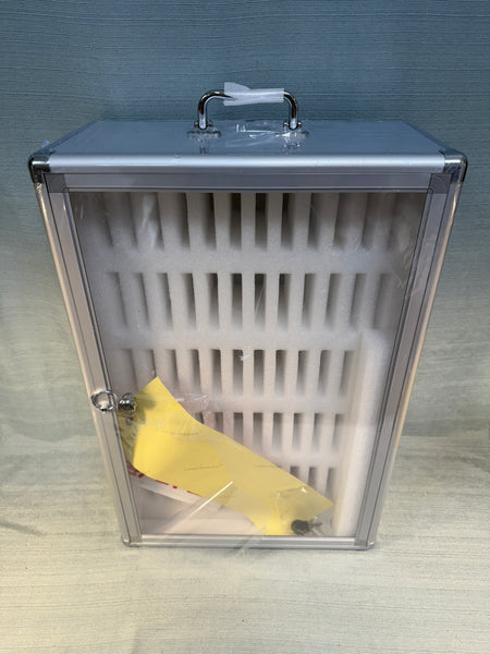 This wall-mounted, locking cabinet holds up to 60 cell phones. For use in Hotel, Factory, Employees, Office, Classroom, any situation. Lightweight construction, and has a handle for carrying. Comes with 2 keys. Like New with original plastic wrapping. Retails new for $230 online.
