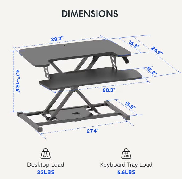 Adjust your view, without replacing your desk. The M7 grows from your own desk, so you can easily adjust your workspace. Uses a gas spring mechanism to convert from 4.5' to 19.5' height with just one hand. Max. 33 lbs. load. Brand New in box.
