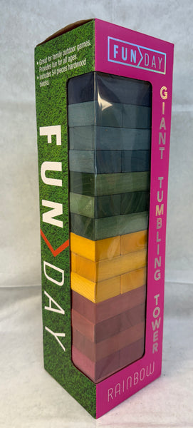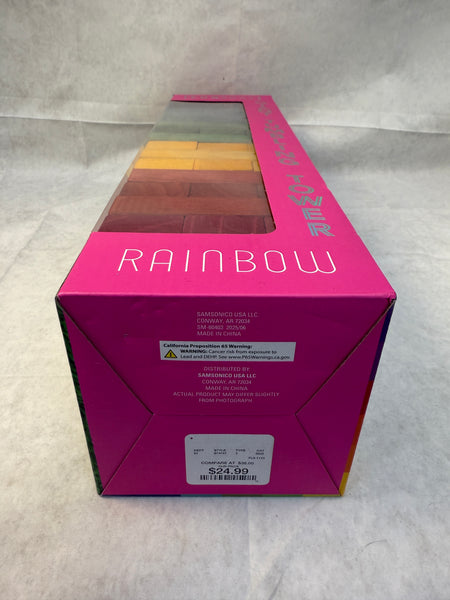 Classic wooden stacking game, fun for all ages. Can be played inside, outside...wherever. 54 rainbow-colored hardwood blocks. Brand New in factory-sealed box.