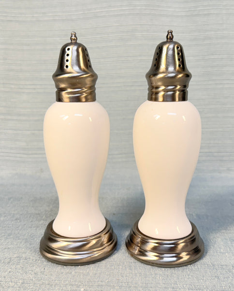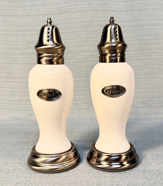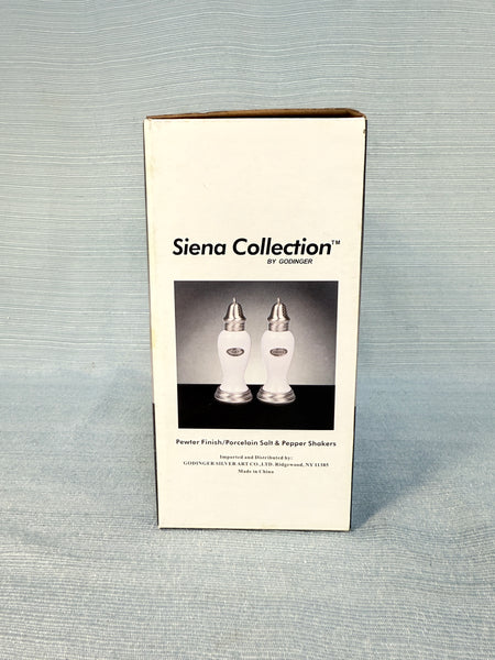 Siena Collection Porcelain & Pewter Salt & Pepper by Godinger - Brand New!