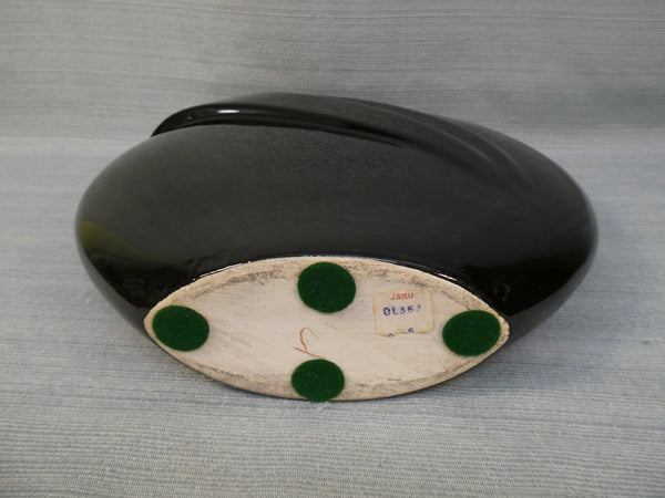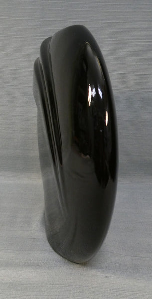 This dramatic, high gloss ceramic vase probably dates to the 1980s. It is in Very Good condition with no chips or cracks. Has small felt pads on base. No maker's mark.