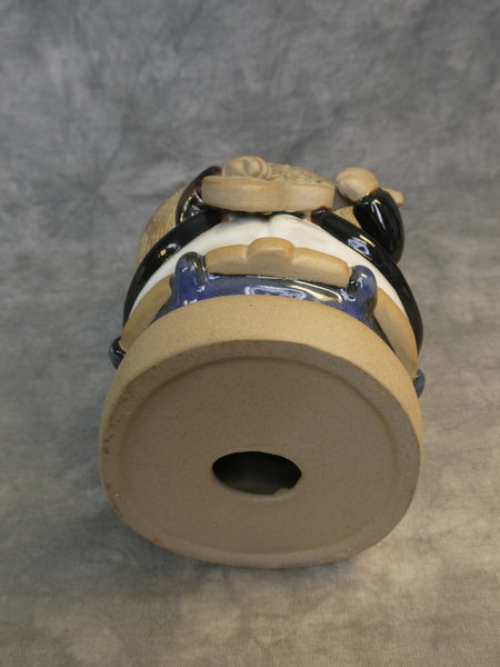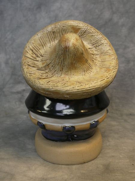 This whimsical figurine is a chubby man playing a guitar and wearing a huge sombrero. Rodo Padilla is a well-known Mexican ceramic artist from Jalisco. In Mint Condition with original sticker.