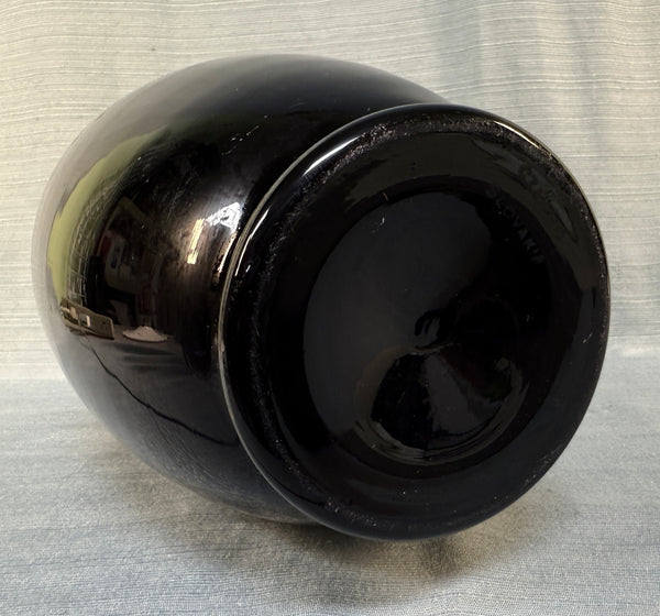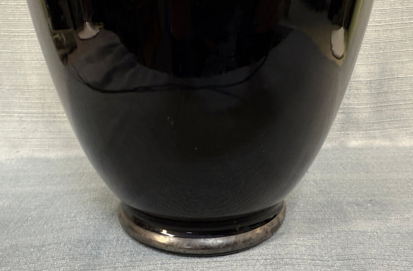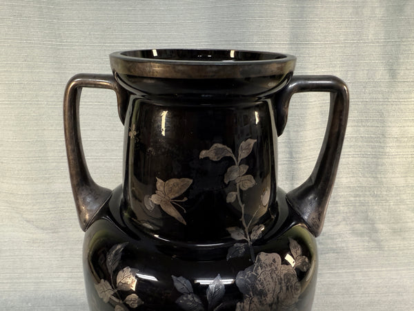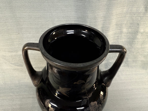 Large Black Glass Two-Handled Vase with Silver Overlay