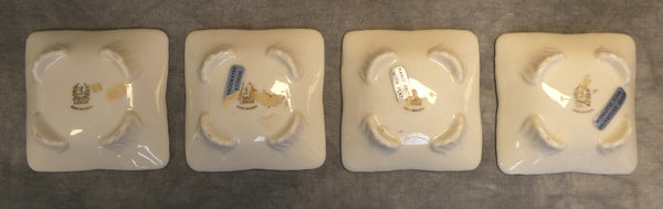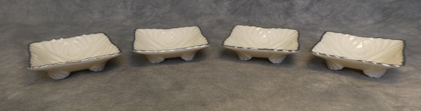 This set of 3" square dishes was made by Lenox in the USA. Ivory china scalloped design dishes with platinum edges and scalloped feet, these small dishes are in Excellent Condition.