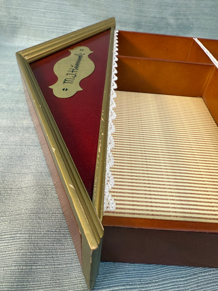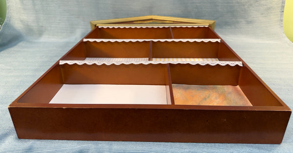 Made by Danbury Mint, this wooden display case features 6 "rooms" complete with wallpaper. Perfect for showing off your figurine collection, this case has hooks on the back for hanging. In good condition with a few minor niches and dents. One side has some sticky tape residue (see photos.)