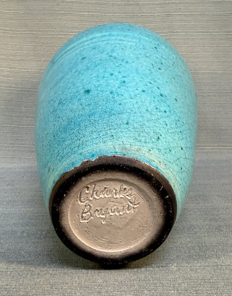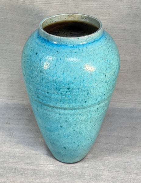Charles Bryant is a well-known North Georgia potter based in Jasper. This large speckled turquoise vase is typical of his work. Signed and in Very Good Condition.