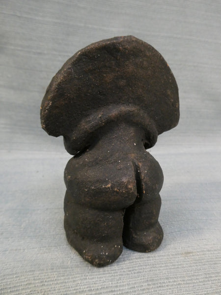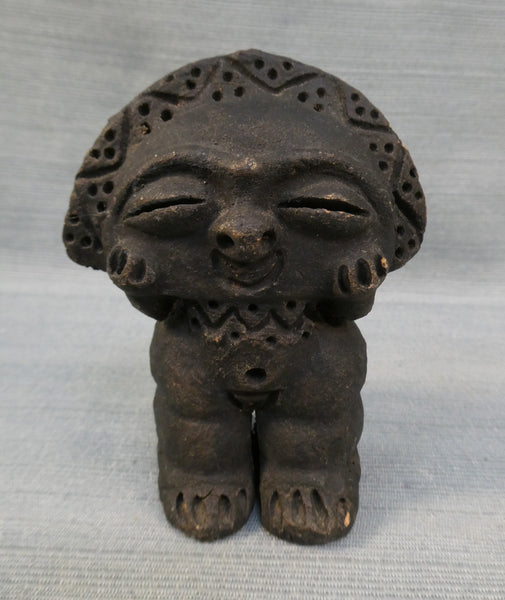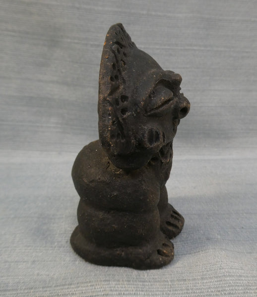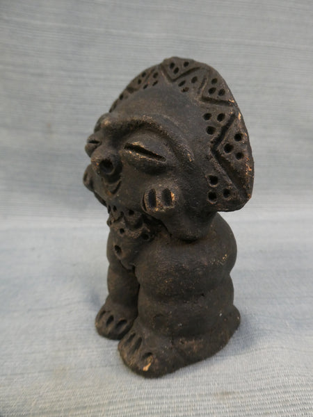 This 4" tall clay figurine represents the Goddess of the Moon, Diosa Luna, for the native peoples of the Caribbean, the Taino. This reproduction of a pre-Columbian artifact is in Very Good condition with no chips or cracks.