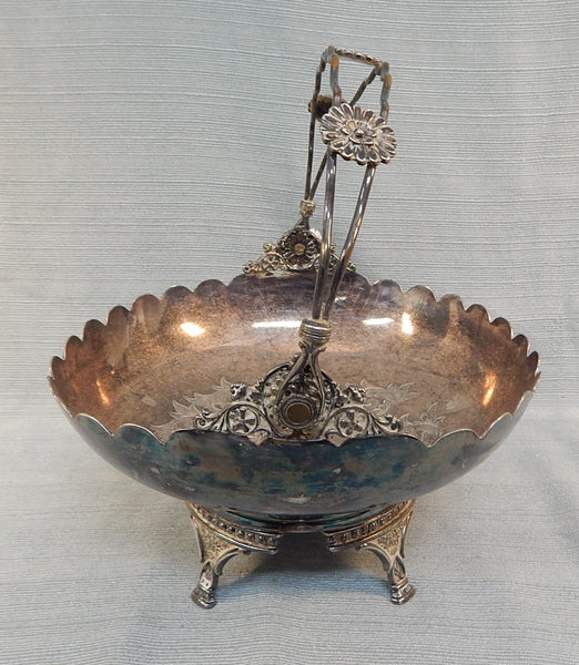 This elaborate silver plate serving piece has a scalloped rim and incised design with a folding handle. It needs a bit of polishing. Circa late 1800's. Made in Canada by the Toronoto Silver Plate Company, which operated from 1882 until 1929, when it was absorbed by Oneida Community Limited.