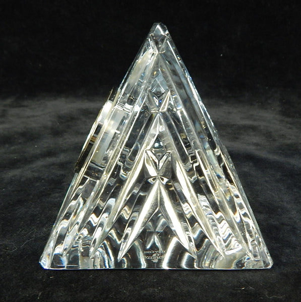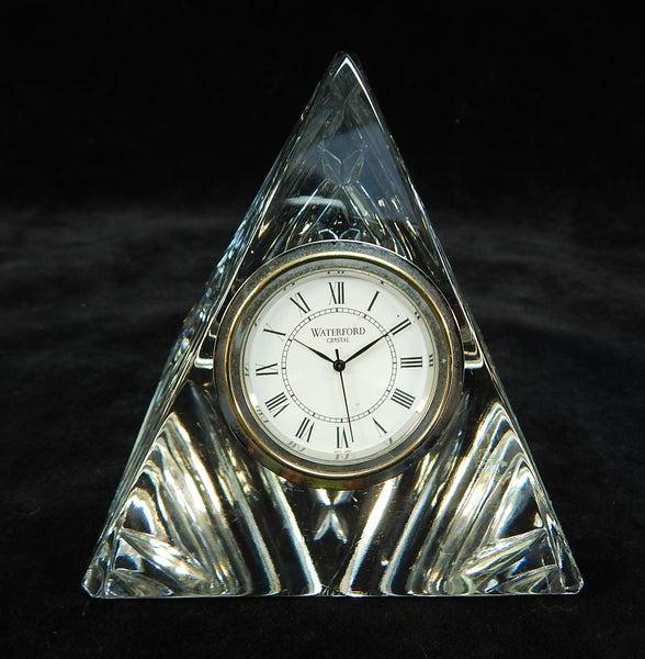 This beautiful clock is a pyramid of crystal with a Seiko quartz movement inset. It's in Like New Condition in the original box. The clock needs a battery. Item 104147.