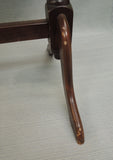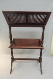 This two-shelf book stand is perfect for displaying some of your favorite books, either open or by binding edge. It's made or medium dark stained wood with wicker caning. It's in good shape with some light wear (see photos).