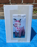 This self-inflating Gingerbread Man was manufactured by Home Accents. Tested and works properly. Inflated dimensions are 42" h x 36" w, and it is LED lit. Does NOT come with tethering stakes.