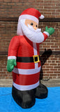 This large, self-inflating Santa Waving was manufactured by Home Accents. Tested and works properly. Inflated dimensions are 72" h x 48" w, and it is LED lit. Does NOT come with tethering stakes.