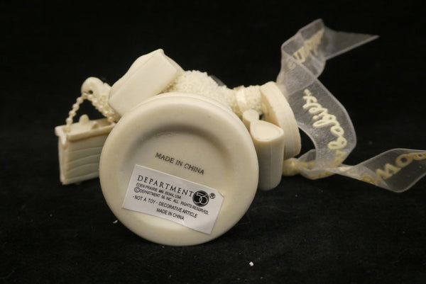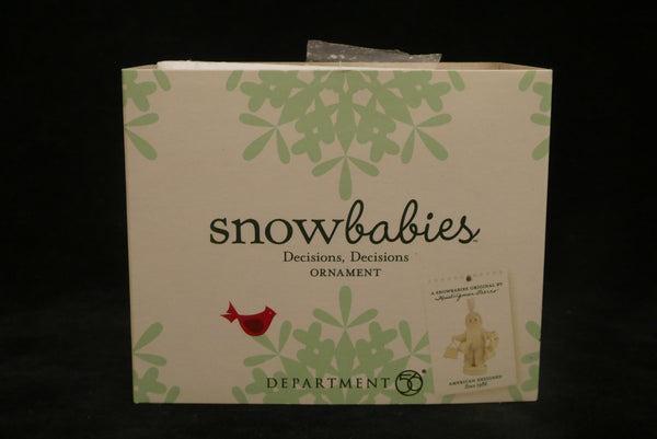 From the Department 56 Snowbabies collection, this ornament has an adorable cherubic child with its arms full of bags. This lovely white bisque ornament will look adorable on your tree! In Excellent Condition. Comes in original box with tags. Box shows slight wear (see photos.)