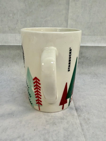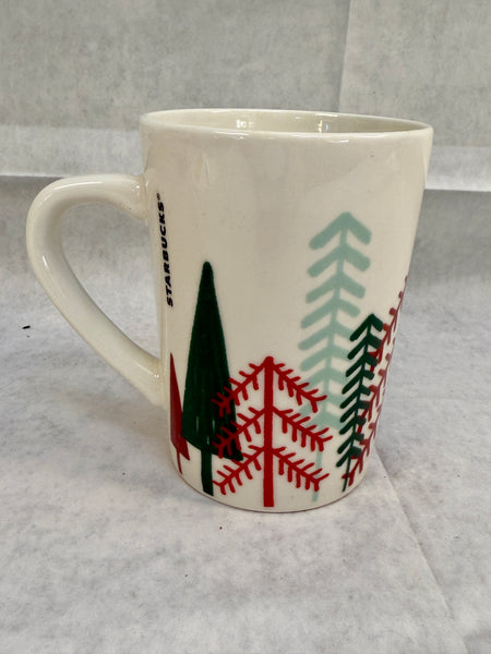 This large 4 oz. mug is decorated with stylized Christmas trees. It's in Like New Condition.
