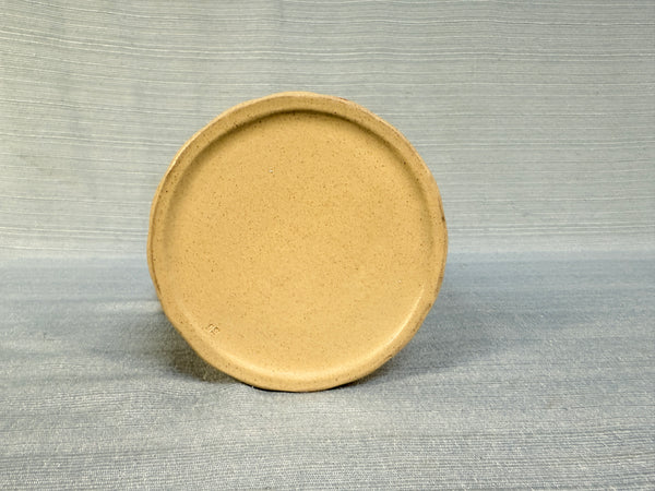This tan matte-glazed pitcher is made in the shape of a bundle of bamboo held together by rope, and the handle looks like twisted rope. In Very Good Condition with no chips or cracks.