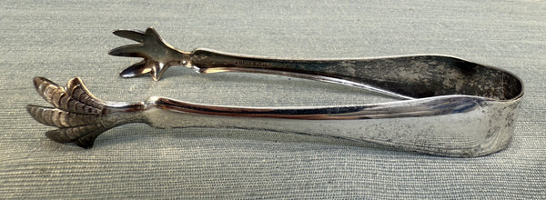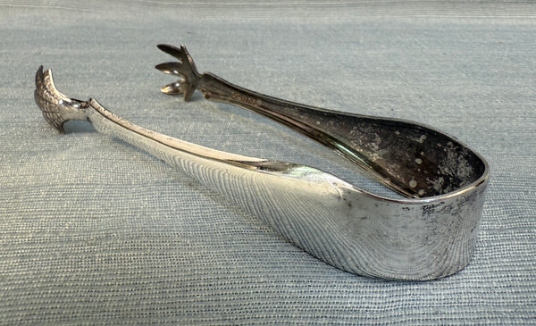 This interesting pair of tongs has talon claw ends. Marked "Silver Plate" inside, but no maker's mark. Use for ice cubes, asparagus, cheese chunks, fruit...you name it! In Excellent condition with a little polishing needed to look their best.