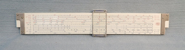 This large (12.5") Hemmi bamboo slide rule is in Very Good Condition. The hard leather case with belt strap has a bit of wear but is serviceable. Made in Japan.