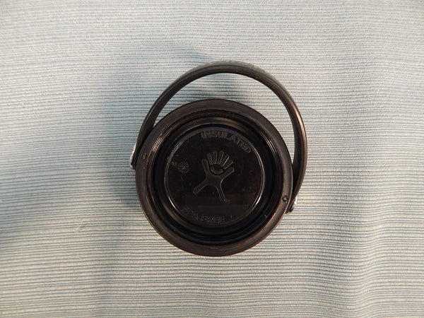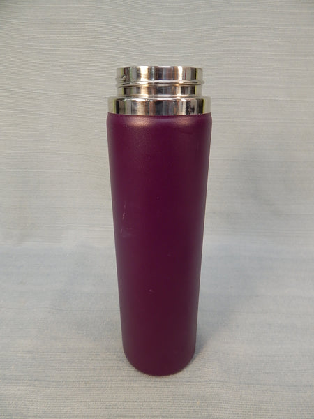 This deep purple HydroFlask has a carry handle. It's clean in and in good shape with a little light wear.
