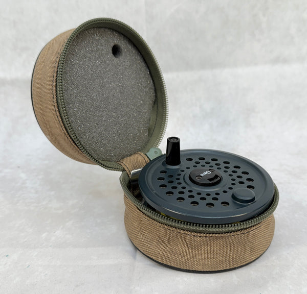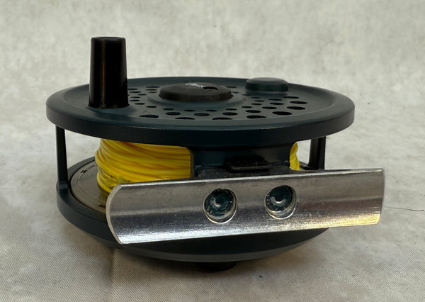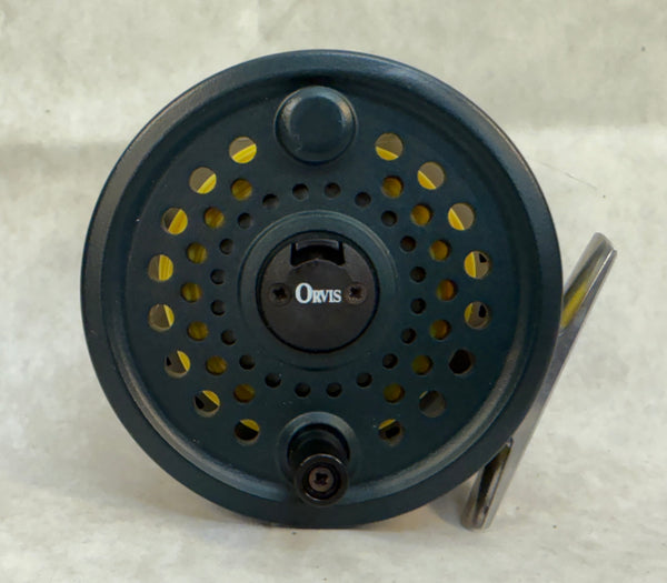 This Orvis disc fly reel is Brand New in box. It features a separate quick change line cartridge. Made in England, this reel comes with fabric and vinyl case, original box and owner's manual. Reel is pre-spooled with line. Excellent, unused condition.