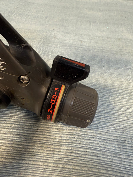 Front Drag Reel. Make quick, one-handed casts via the Quick-Fire II system, while achieving increased distances with less effort and wind knots because of the propulsion line management system. This reel is in used condition with some pitting of the chrome on handle.