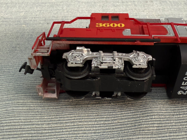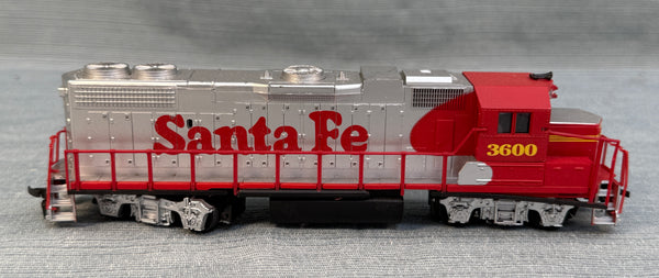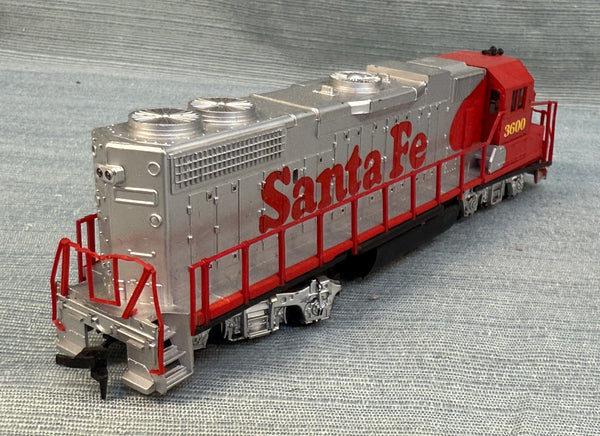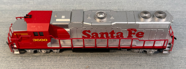 This untested, HO scale model railroad car is the 3600 Santa Fe Locomotive engine. Made in China by Life-Like. In good, used condition - has a wonky back plastic railing. Measures 8" long x 1.5" w x 2" h. Untested.