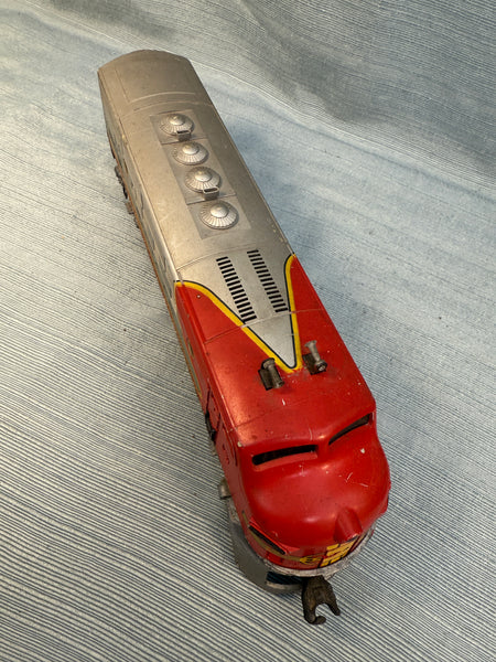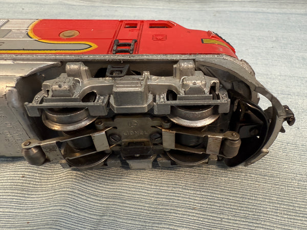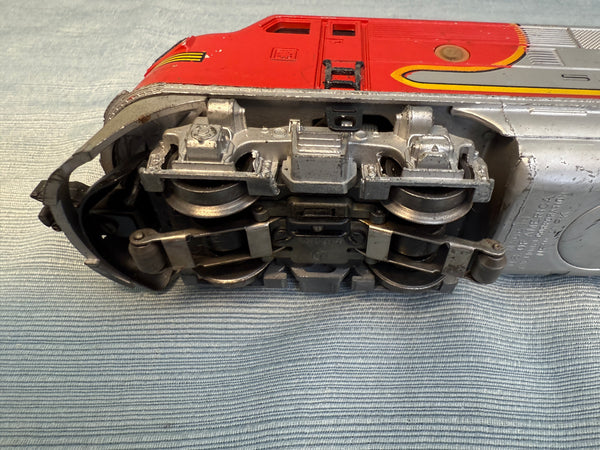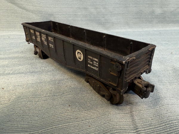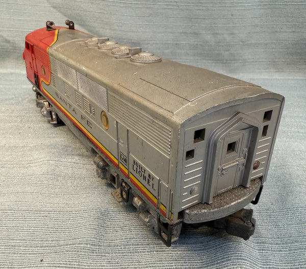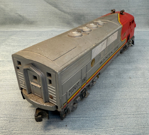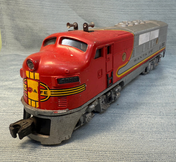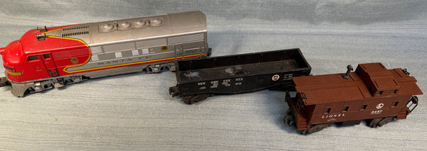 The 3 cars included in this lot are: Lionel Santa Fe Engine 2333-20, Lionel Caboose 6457, and Pennsylvania Gondola Car 2452X. All are used, and have some dust and wear. Untested.