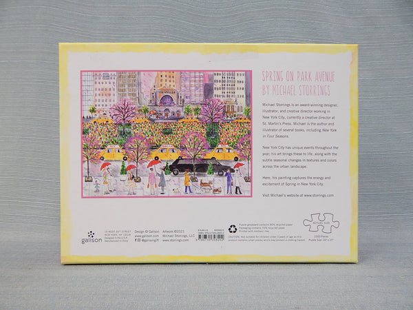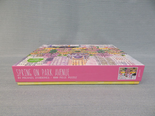 1000 piece jigsaw puzzle by Galison. Illustration depicting springtime along New York's Park Avenue. Used, but certified complete by our staff.