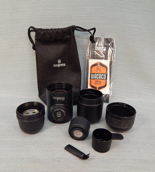 This manual operation, compact, lightweight and versatile Espresso maker is perfect for travel or camping. Add ground coffee to the filter basket, then add boiling water and you will have 50 ml of espresso to start your day. Comes in a handy travel pouch. Like New, never used!