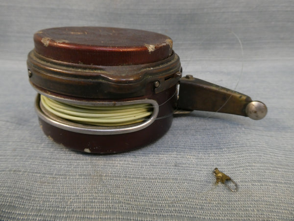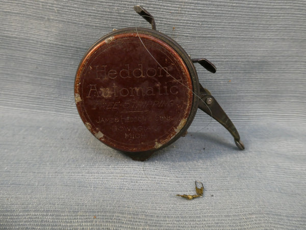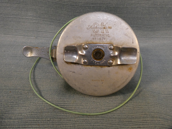 This lot of 2 vintage fishing reels includes (1) Haddon Automatic Free Stripping reel, James Haddon's Sons, Dowagiac, Michigan; and (1) Shakespeare OK No. 1821 Model GO. Both come with fishing line and are in used condition.