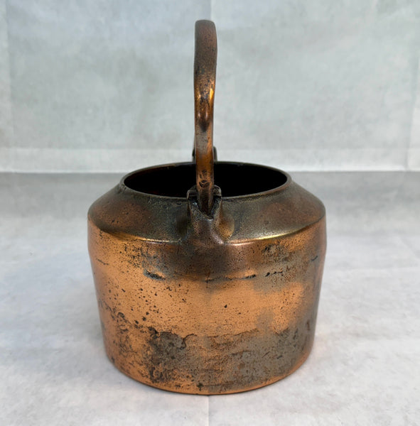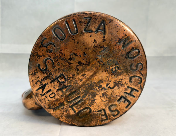 This kettle was made by Souza Noschese in São Paolo, Brazil. It looks to be cast iron with copper plating. It's a handsome, substantial piece.
