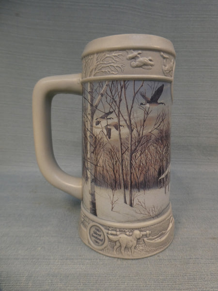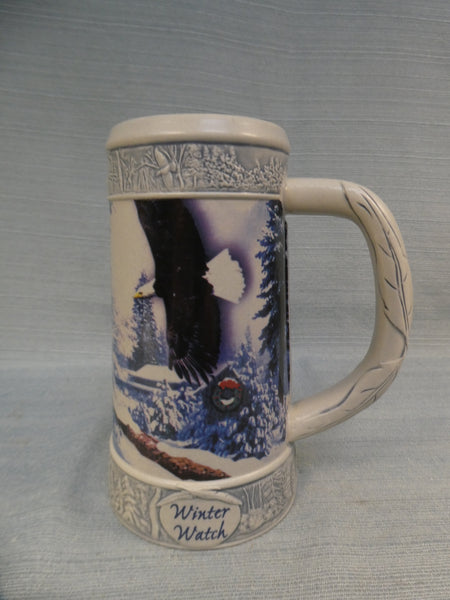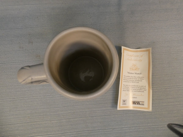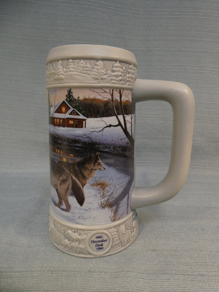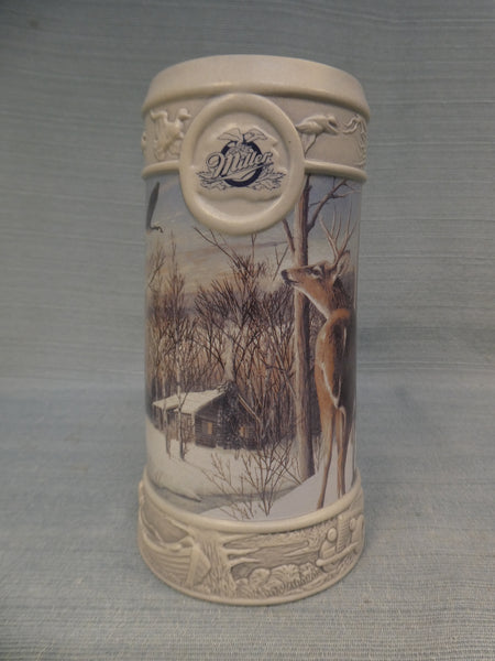 These 3 Holiday Collection ceramic mugs were produced for Miller Brewing Company - 1998 "Silent Sentinel", 1999 "December Dusk" and 2000 "Winter Watch". Each measures 7" h x 4" diameter plus handle. They are in Excellent condition with no chips or cracks or signs of use.