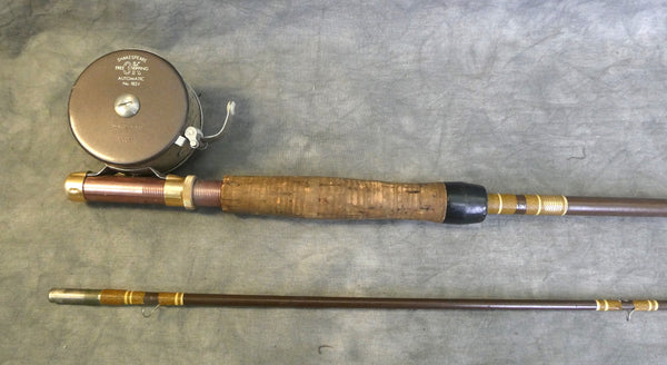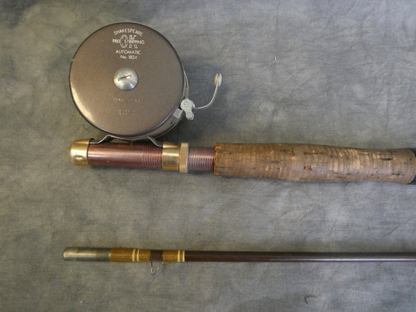 This 2-piece vintage Fly Fishing Rod was by Roddy Recreation of Tubular Glas. It is marked 6-87 and measures 8.5' long. The rod has a cork handle with metal butt. It comes with a Shakespeare OK free stripping automatic No. 1824 reel. In Good condition.