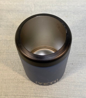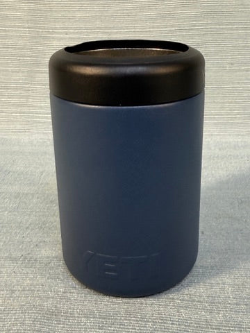 This Yeti can cooler will keep your canned beer or soda cold much longer than a typical coozie. The double-wall stainless steel insulated body has a dark blue finish, and there's a semi-rigid rubber gasket at the top to hold the can securely. Very Good Condition, lightly used.